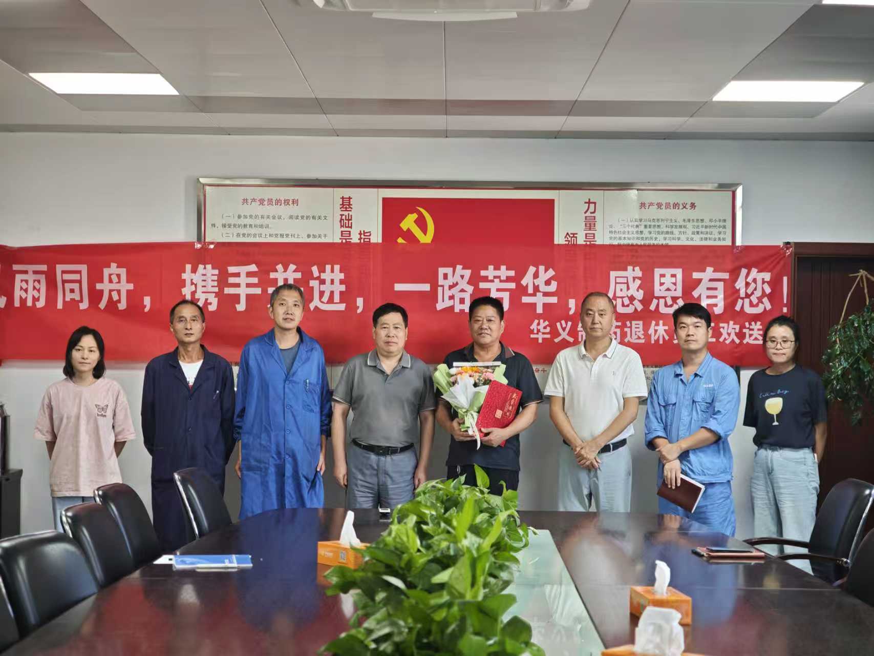 在2025年9月22日下午,華義制藥迎來今年第四次退休員工歡送會,退休員工是合成車間的楊可榮同志。楊可榮同志于2000年11月進(jìn)入華義工作,至今已近25年,期間一直在車間工作,是車間較早一批員工之一,并在2024年度榮獲“先進(jìn)員工”光榮稱號。