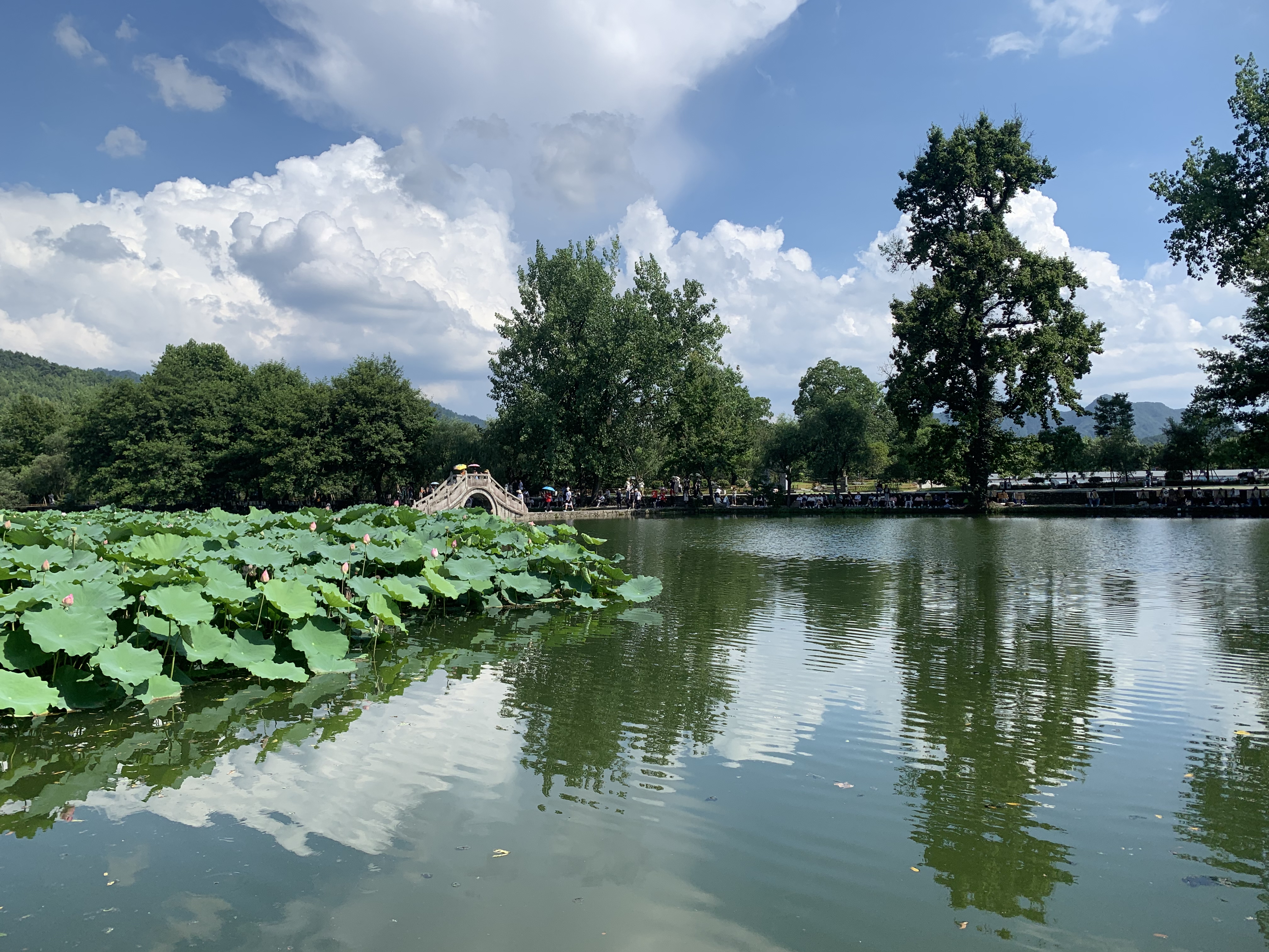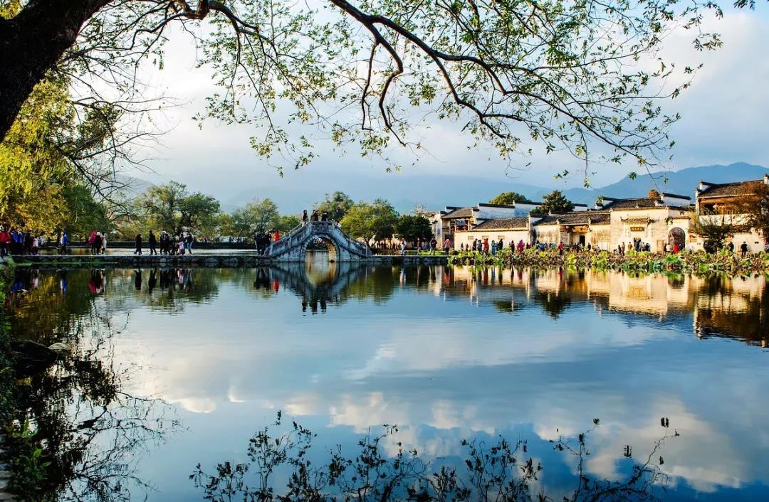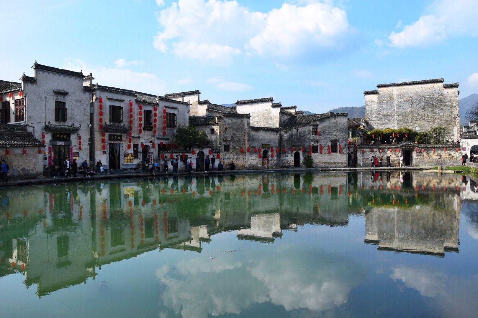 宏村,一座以徽派建筑為特色的村落,始建于南宋,位于黟縣城西北角,距今已近千年歷史,為汪姓聚居之地,因奧斯卡獲獎(jiǎng)電影《臥虎藏龍》而聞名中外,整個(gè)村落占地30公頃,枕雷崗面南湖,山水明秀,被譽(yù)為“中國畫里的鄉(xiāng)村”。因空中俯視角度猶如一只大水牛橫臥在田野之中,又稱牛形村