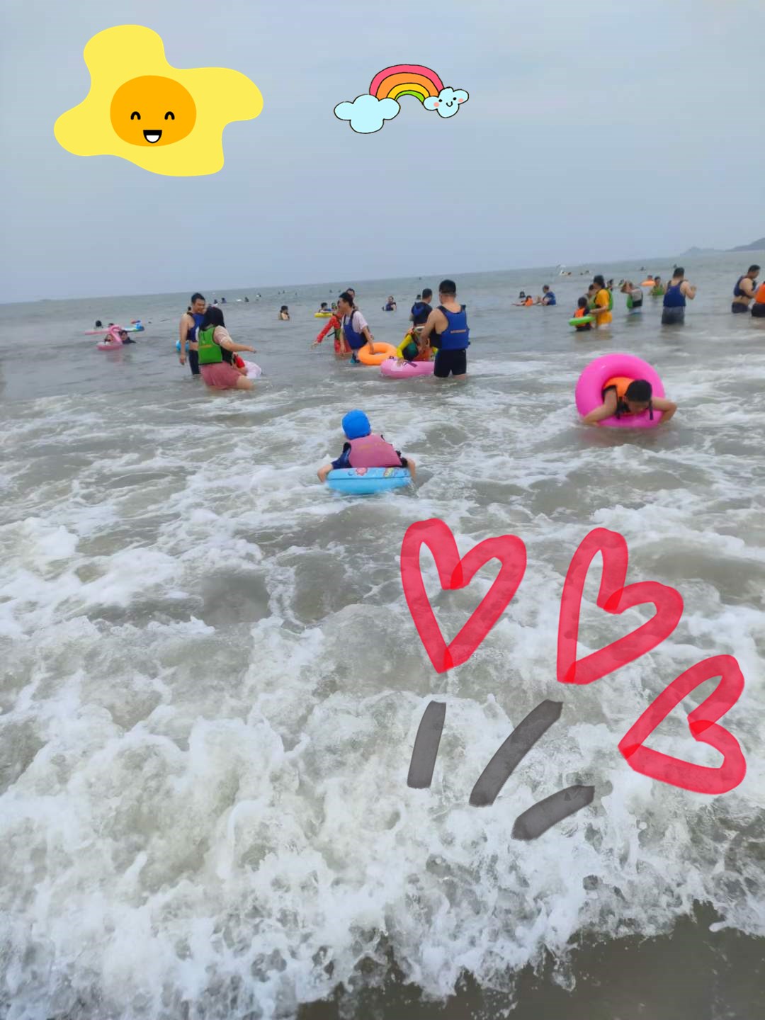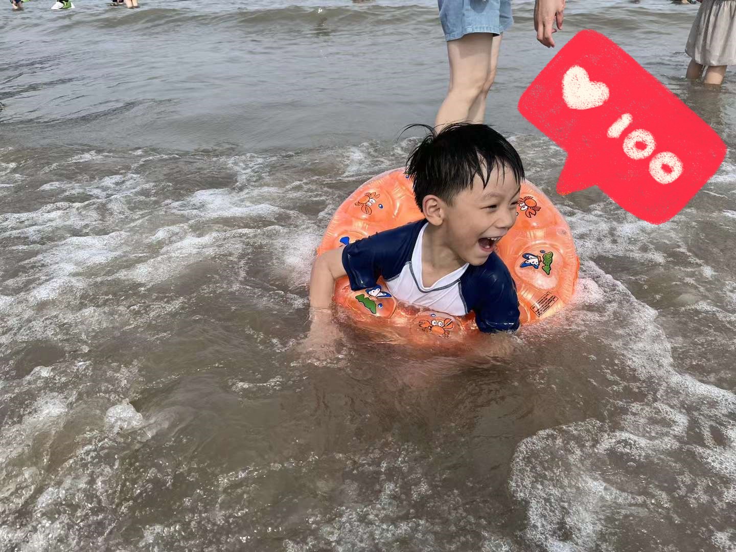 小朋友們宛如一只只活潑可愛的小鴨子自由自在地游來游去。孩子們的喊聲,笑聲,打鬧聲充斥著整個海灘,蕩漾著歡樂。