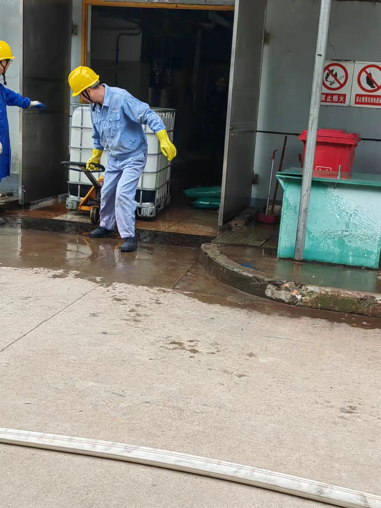 本次演練模擬五車間裝殘液的噸桶發(fā)生異?;瘜W(xué)反應(yīng),進(jìn)料口處不斷噴料,現(xiàn)場出現(xiàn)大量泄漏,空氣中彌漫大量有機(jī)蒸氣,為防止事態(tài)擴(kuò)大以致空間爆炸而采取應(yīng)急處置的過程。