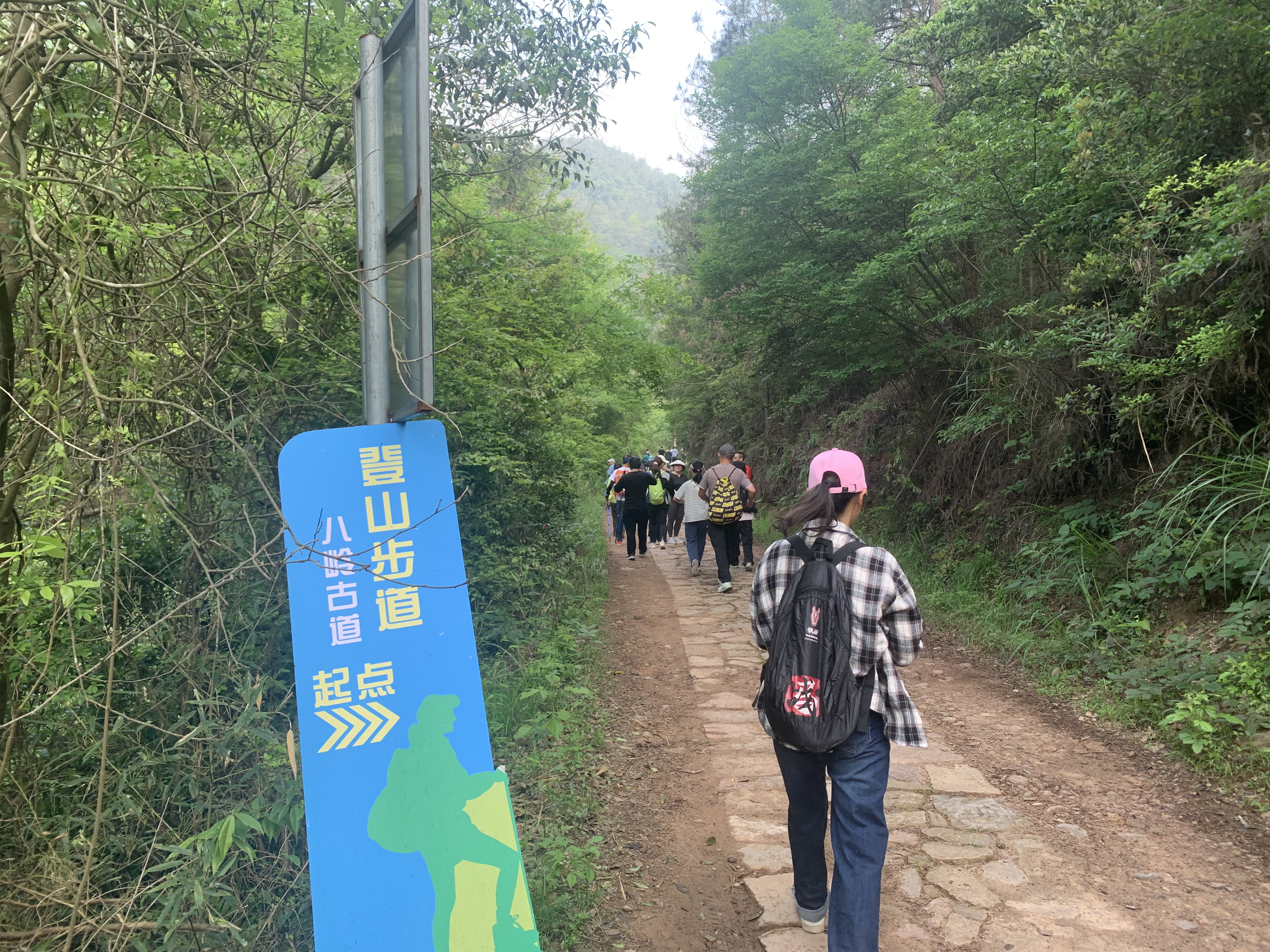 4月27日上午8點,大部隊在八嶺坑村集合并有序出發(fā)上山。本次環(huán)線選擇的是盛家坑小環(huán)線,八嶺坑村-分水坑-盛家坑-白羊塢-東坑-八嶺坑村,內有古道、山路、無人村、小溪、古橋、密林,是一條相對休閑的越野路線,全程9公里,歷時2.5小時左右。