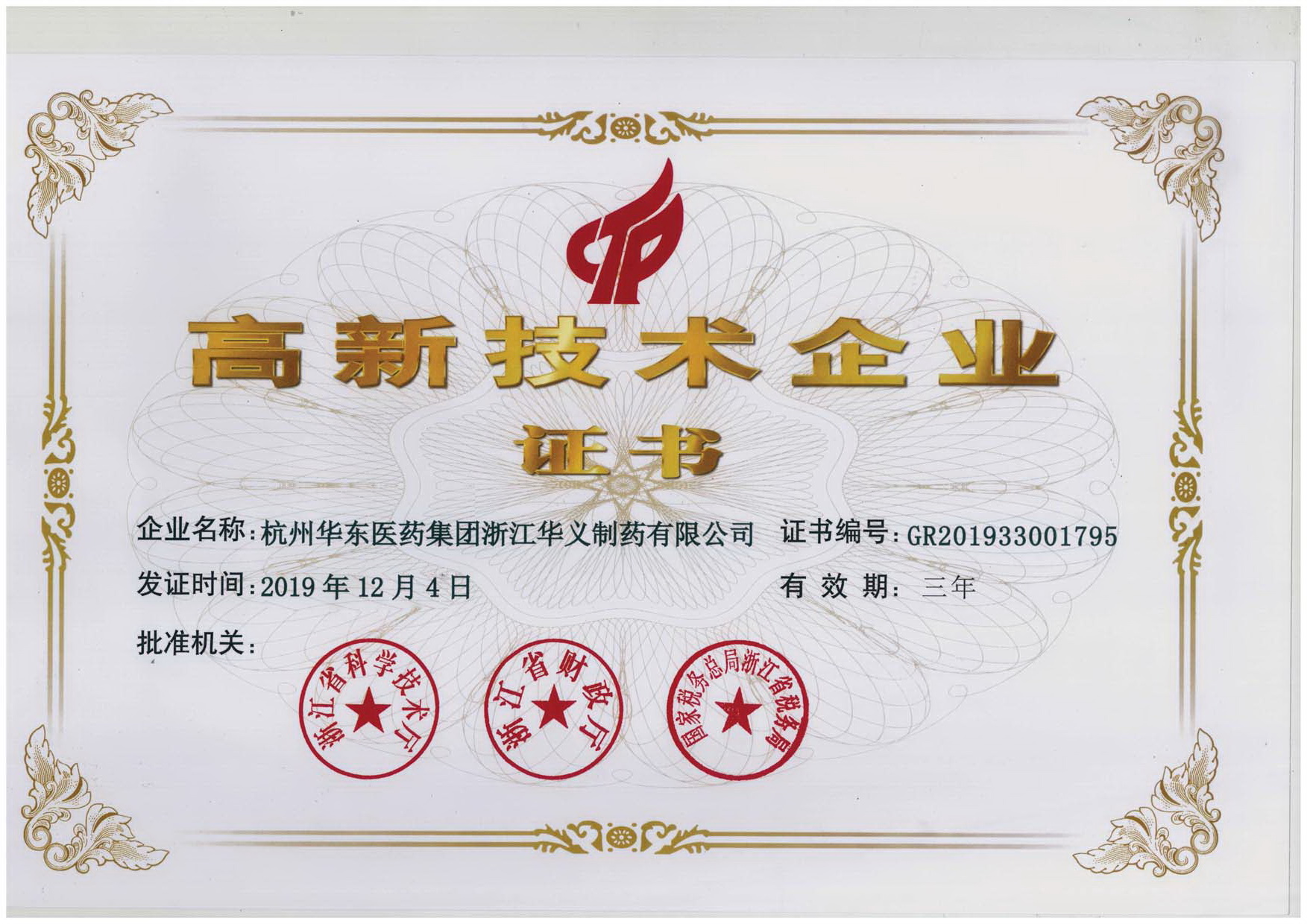 高新技術(shù)企業(yè)證書(shū)