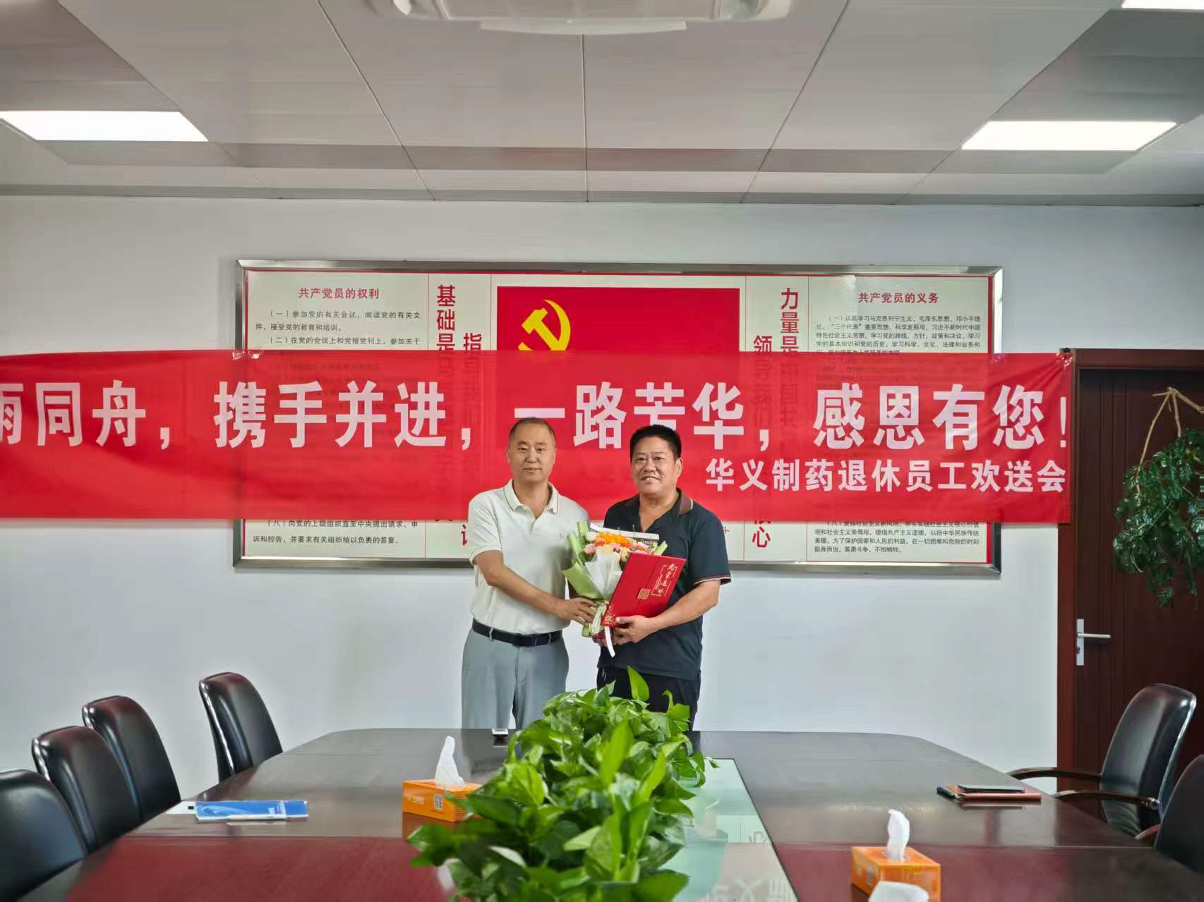 在2025年9月22日下午,華義制藥迎來今年第四次退休員工歡送會,退休員工是合成車間的楊可榮同志。楊可榮同志于2000年11月進(jìn)入華義工作,至今已近25年,期間一直在車間工作,是車間較早一批員工之一,并在2024年度榮獲“先進(jìn)員工”光榮稱號。